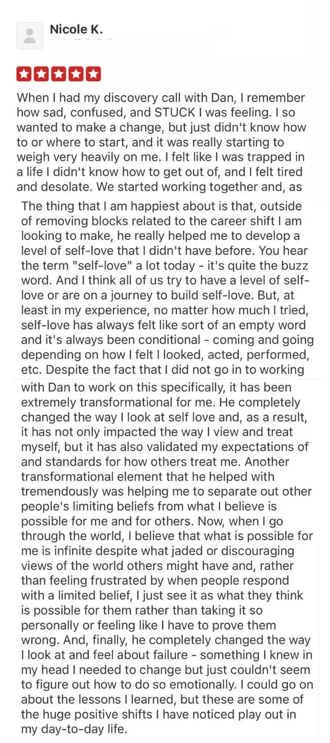That's why Yelp ranked me #1 life coach in Los Angeles for 8 years. Why I've had the honor of working with over 1000 people from around the world. And why I'll never stop learning how to support myself and my clients even better.